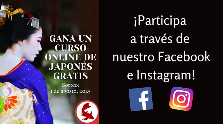 Participa en nuestros concursos y podrás ganar un cupo gratuito en nuestras clases grupales de japonés, en cualquiera de sus niveles. Los concursos se realizan periódicamente durante el año, y en cada ocasión se premia a dos ganadores (uno por Facebook y otro por Instagram).